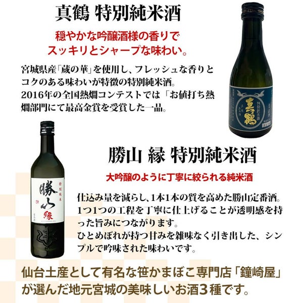 宮城・仙台名産の笹かまぼこ・牛たんとおいしい地酒の飲み比べセット