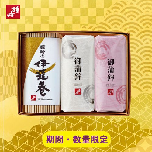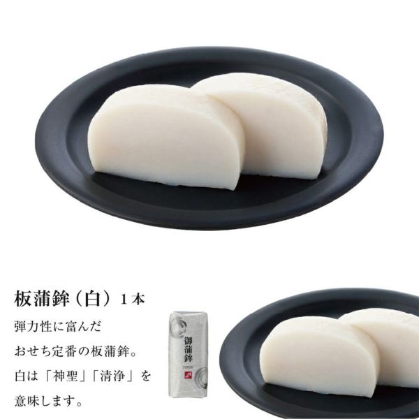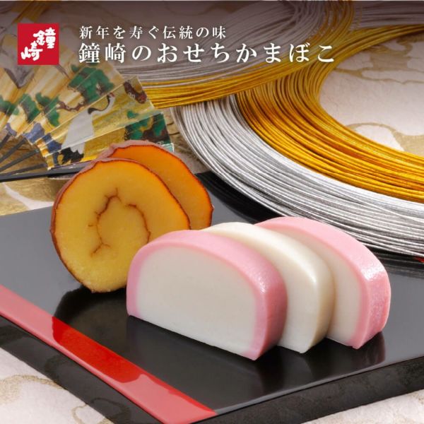 板蒲鉾(紅・白)、鐘崎の伊達巻:卵 |