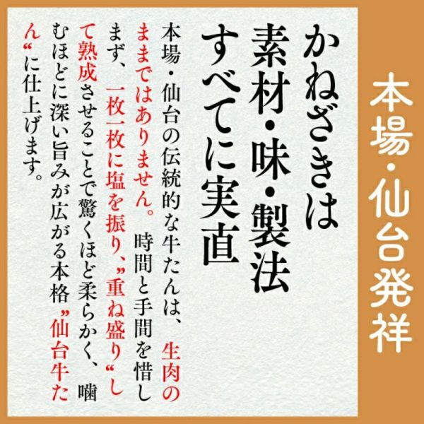 ◆炭火焼き牛たん(塩味)・・・6パック(計120g) 牛たんの柔らかな部位を厚切りにし、ほどよく熟成させました。牛たん本来のうま味を堪能できるジューシーな焼き上がりが、「牛たん かねざき」のこだわり。本格的な「牛たん焼き」の味わいを、ご家庭でお手軽にお楽しみいただけます。 |