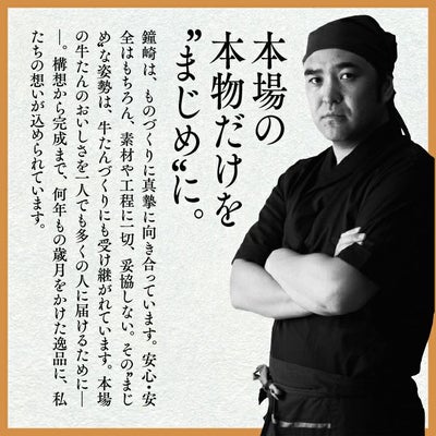本場・仙台の味を、ご家庭で。 素材、味、製法──すべてに“まじめ”な、かねざきの厚切り牛たん 使用するのは、たん先に近い硬い部位ではなく、特にやわらかく旨みのある「たん中」と「たん元」のみ。 厳しい自社基準を設け、素材の質にとことんこだわっています。 味つけには、数十種類の塩から選び抜いた、かねざき独自の塩を使用。 自社でパウダー加工した塩を、職人が一枚ずつ丁寧に“手振り”することで、肉の状態に合わせた絶妙な塩加減に仕上げています。 仙台の牛たんならではの“熟成”も腕の見せどころ。肉厚にスライスした牛たんを職人が一枚一枚丁寧に積み上げて、“重ね盛り”に。温度を2〜6℃の間で管理しながら数日間、じっくりと寝かせることで、驚くほどやわらかく、噛むほどに旨みが広がる本格“仙台牛たん”に仕上がります。 やわらかく、しっかり旨味が染み込む熟成だからこそできる“厚切り”。部位ごとの食感や脂の入り方を見極めながら、牛たん本来のおいしさを思い切り堪能できる厚さに仕上げています。 焼き方はとても簡単! 鉄製フライパンなら軽く油をひいて、テフロンなら油は不要。 解凍後は、強火で一気に焼き上げるのがポイント。 脂ののった厚切り牛たんならではの旨みが、しっかり閉じ込められ、 外はサクサク、中はジューシーに仕上がります! |