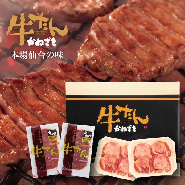本場・仙台の味を、ご家庭で。 素材、味、製法──すべてに“まじめ”な、かねざきの厚切り牛たん 使用するのは、たん先に近い硬い部位ではなく、特にやわらかく旨みのある「たん中」と「たん元」のみ。 厳しい自社基準を設け、素材の質にとことんこだわっています。 味つけには、数十種類の塩から選び抜いた、かねざき独自の塩を使用。 自社でパウダー加工した塩を、職人が一枚ずつ丁寧に“手振り”することで、肉の状態に合わせた絶妙な塩加減に仕上げています。 仙台の牛たんならではの“熟成”も腕の見せどころ。肉厚にスライスした牛たんを職人が一枚一枚丁寧に積み上げて、“重ね盛り”に。温度を2〜6℃の間で管理しながら数日間、じっくりと寝かせることで、驚くほどやわらかく、噛むほどに旨みが広がる本格“仙台牛たん”に仕上がります。 やわらかく、しっかり旨味が染み込む熟成だからこそできる“厚切り”。部位ごとの食感や脂の入り方を見極めながら、牛たん本来のおいしさを思い切り堪能できる厚さに仕上げています。 焼き方はとても簡単! 鉄製フライパンなら軽く油をひいて、テフロンなら油は不要。 解凍後は、強火で一気に焼き上げるのがポイント。 脂ののった厚切り牛たんならではの旨みが、しっかり閉じ込められ、 外はサクサク、中はジューシーに仕上がります! |