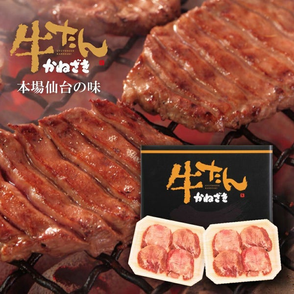 本場・仙台の味を、ご家庭で。 素材、味、製法──すべてに“まじめ”な、かねざきの厚切り牛たん 使用するのは、たん先に近い硬い部位ではなく、特にやわらかく旨みのある「たん中」と「たん元」のみ。 厳しい自社基準を設け、素材の質にとことんこだわっています。 味つけには、数十種類の塩から選び抜いた、かねざき独自の塩を使用。 自社でパウダー加工した塩を、職人が一枚ずつ丁寧に“手振り”することで、肉の状態に合わせた絶妙な塩加減に仕上げています。 仙台の牛たんならではの“熟成”も腕の見せどころ。肉厚にスライスした牛たんを職人が一枚一枚丁寧に積み上げて、“重ね盛り”に。温度を2〜6℃の間で管理しながら数日間、じっくりと寝かせることで、驚くほどやわらかく、噛むほどに旨みが広がる本格“仙台牛たん”に仕上がります。 やわらかく、しっかり旨味が染み込む熟成だからこそできる“厚切り”。部位ごとの食感や脂の入り方を見極めながら、牛たん本来のおいしさを思い切り堪能できる厚さに仕上げています。 焼き方はとても簡単! 鉄製フライパンなら軽く油をひいて、テフロンなら油は不要。 解凍後は、強火で一気に焼き上げるのがポイント。 脂ののった厚切り牛たんならではの旨みが、しっかり閉じ込められ、 外はサクサク、中はジューシーに仕上がります! |