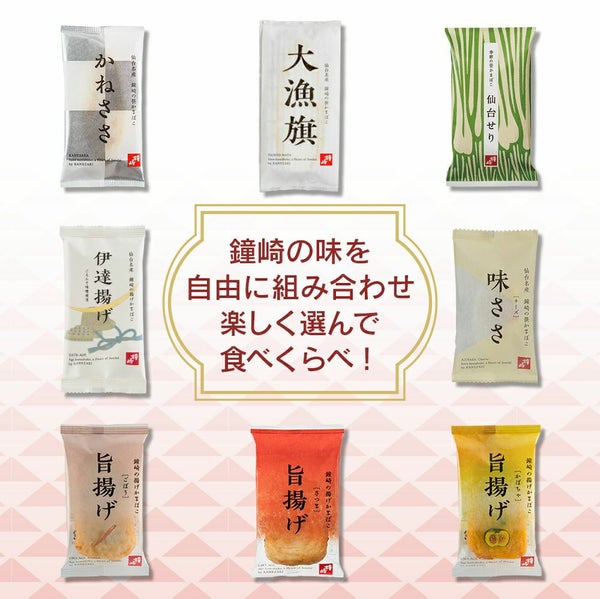 ◆かねささ・・・3枚 魚本来の風味を際立たせつつ、後味はすっきりと。目指したのは、食べたあとにすぐまた食べたくなるような、やさしい味わいの笹かまぼこ。そのために素材を厳選し、化学調味料・保存料・でんぷん・卵白といった、必要ないものはとことん外しました。魚のすり身と独自の天然調味料、吉次魚醤など、自然の素材だけで作り上げた笹かまぼこです。 |