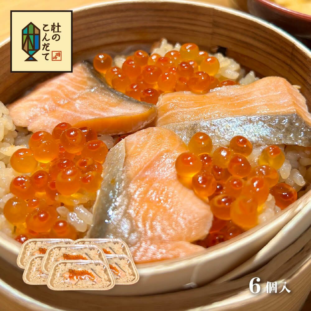 ◆鐘崎の「はらこ飯物語」・・・6個入り 鐘崎の「はらこ飯物語」はとにかく飯が旨い!のが特徴です。ご飯の絶妙な味付けのバランス、そしてほぐし身も入っているため、鮭の旨味も吸い込んだ絶品のご飯となっています。キラキラ輝くいくらにしっとりジューシーな鮭の切り身と鮭の旨味を贅沢に味わうことができる逸品です! |