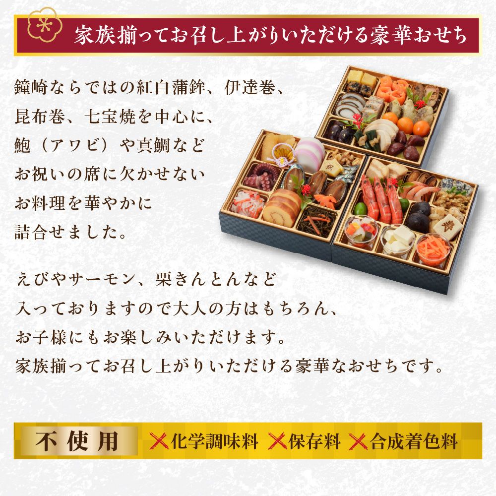 【送料無料】鐘崎のおせち 迎春乃宴(三段重)「宴-01」