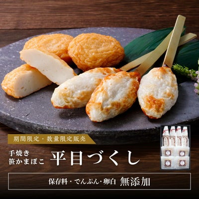 ◆手焼き笹かまぼこ 平目・・・4枚 天然の平目の身は、昔ながらの石臼で、程よい弾力となめらかさをあわせもつすり身になります。丁寧に形を整え、じっくり焼き上げれば、ふんわり柔らかな食感に。平目特有の上品な味わいを、存分にお楽しみいただけます。 |