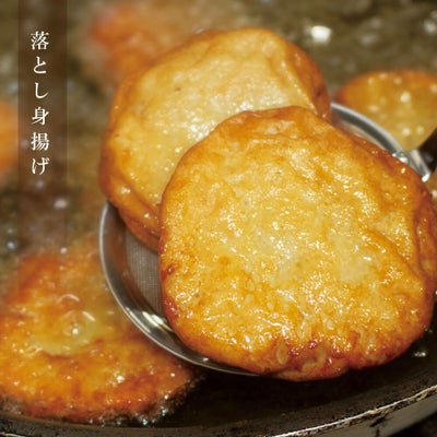 ◆落とし身揚げ平目・・・4個 魚の旨味をぎゅっと凝縮した、特製の「揚げかまぼこ」。職人が丹念に下ごしらえした希少部位「平目の肝」は、コクとまろやかさを生み出す隠し味に。しなやかな食感と、深い味わいをお楽しみください。 |