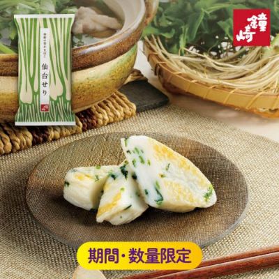 ◆季節のかねささ「仙台せり」・・・1枚 『季節のかねささ 仙台せり』は、鐘崎自慢の魚のすり身に、瑞々しい彩りと食感が魅力の宮城県産「仙台せり」を合わせました。かねささのうまみと、せりならではの清爽な香りをご堪能いただける一枚です。 |