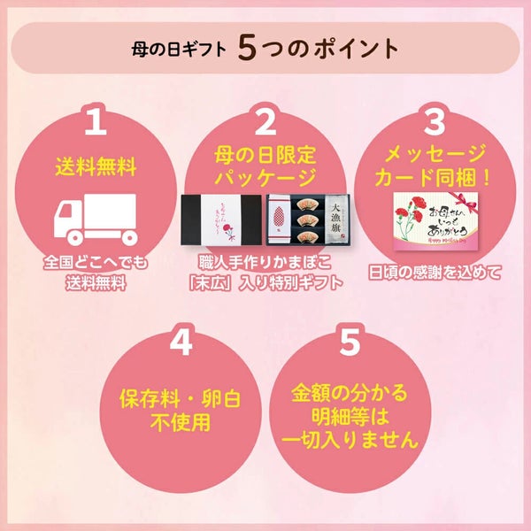 大切なお母さんに食べてほしい、からだ想いのかまぼこギフトです。 母の日ギフト