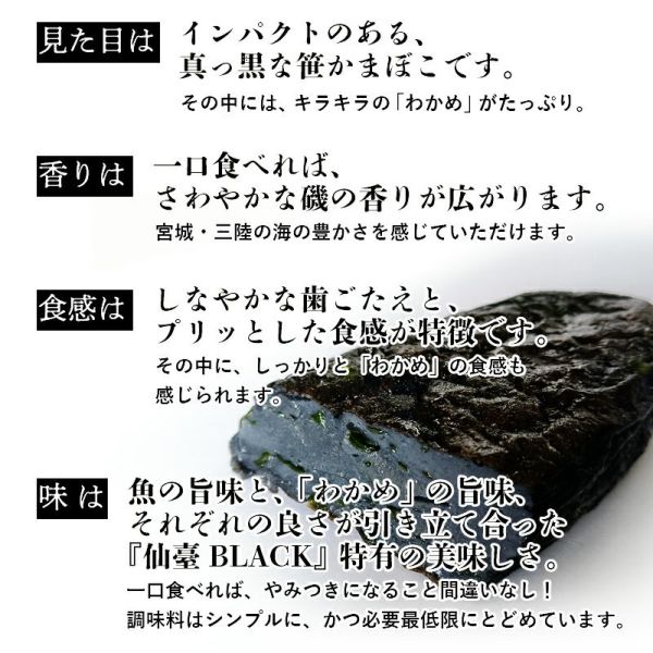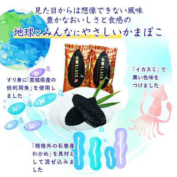 《限定10個!》【あさイチ紹介商品】宮城県産の低・未利用魚と、規格外の石巻産わかめを使用した、 これまでにない「黒い笹かまぼこ」です